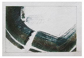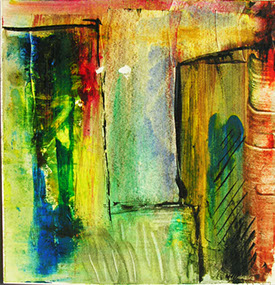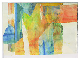 They are completed as a series of 6-12 pieces using a variety of media (watercolor, acrylics, etc.) on paper that is then mounted on Arches paper.